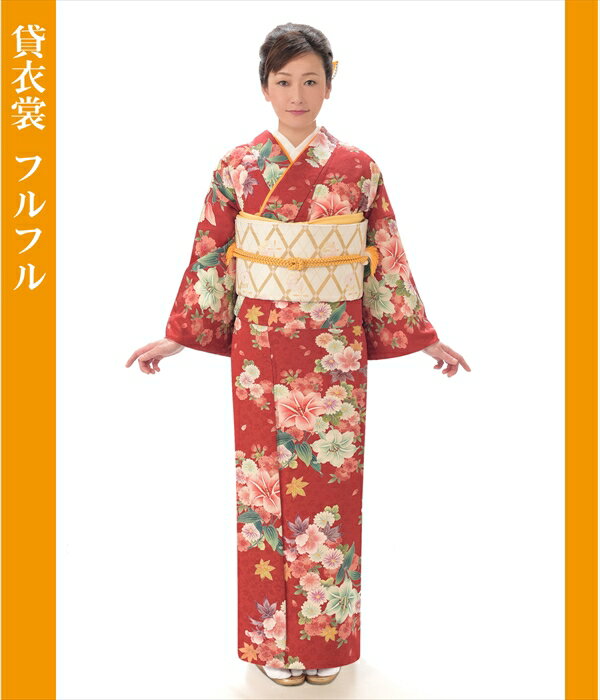 ■0532-39-7660 大きいサイズ 身長・・・160cm〜175cm位 洋服サイズ・・・7号〜11号位まで 商品説明 朱色地にお花があふれんばかりに咲き誇り装う人の 可憐さを引き立たせるお着物です。